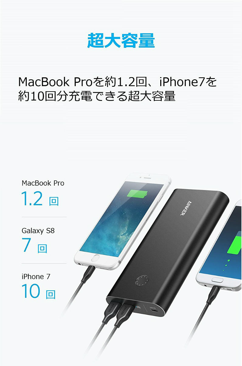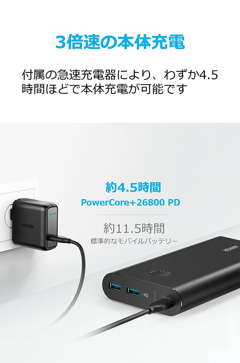 モバイルバッテリー Anker PowerCore+ 26800 PD (Power Delivery対応 26800mAh モバイルバッテリー)【USB-Cポート搭載 / USB-C急速充電器付属 / PSE認証済】