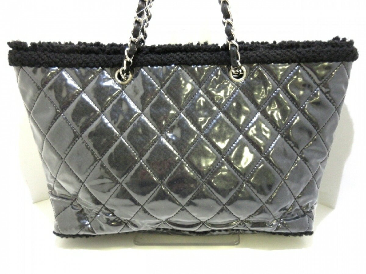 ≫ 配送について ≫ご利用ガイド ≫よくある質問CHANEL(シャネル) トートバッグ パテントトワレ・チェーントート 黒×クリア ココマーク/チェーンショルダー/シルバー金具 ビニール×ファニーツイード×ラムスキン【中古】 ジャンル トートバッグ ブランド CHANEL(シャネル) 商品名 パテントトワレ・チェーントート実寸サイズ 縦 : 約 25 cm 横 : 約 36 cm 〜 45 cm マチ : 約 12 cm ハンドル : 本体まで 約 27 cm (撮影時の状態で採寸) ・採寸方法を見る ・着用イメージを見るカラー 黒×クリアデザイン -ココマーク/チェーンショルダー/シルバー金具■外ポケット:なし■内ポケット:ファスナータイプ×1、オープンタイプ×2 素材 ビニール×ファニーツイード×ラムスキンコンディションレベル 【C】ふつうに使える コンディションの備考 【外側】 ・全体的 ⇒ 薄らと汚れている / 型崩れ若干 ・ハンドル ⇒ 擦れ若干【内側】 ・全体的 ⇒ 薄らと汚れている ・メイン口 ⇒ 小傷多数製造番号・刻印 13番台シリアル シールあり 付属品 なし