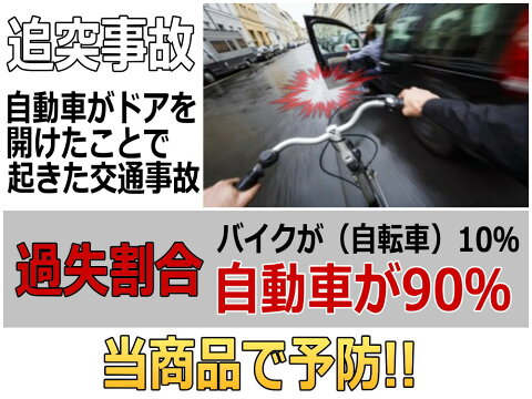 ドアを開くとき、不注意でバイクや自転車がドアに追突…(ドア開閉事故) 歩行者や後方車も同様に、停止中の車のドア開閉時に接触してしまう事故が増えています。
