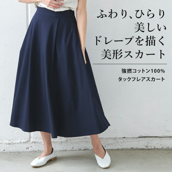 Sozai コットン100% 強撚コットン100% タックフレアスカート カラー ネイビー・ブラック サイズ サイズ ウエスト(ゴム上がり) ヒップ 総丈 裾巾 フリー 約66cm 約150cm 約81cm 約132cm LL 約72cm 約154cm 約84cm 約132cm サイズ計測方法はコチラ>>> 原産国 日本製 素材 綿100% 洗濯表記 手洗い 裏地 なし ポケット あり モデル着用サイズ フリーサイズ メール便 ○ 特徴 ふわり、ひらり、美しいドレープを描く美形スカート。